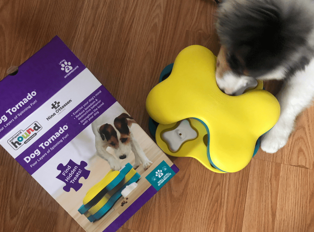 This was one of Arashi’s favorite. It kept him really busy and entertained. You place some kibble or treats in the compartment, and your dog needs to figure out how to solve the puzzle!