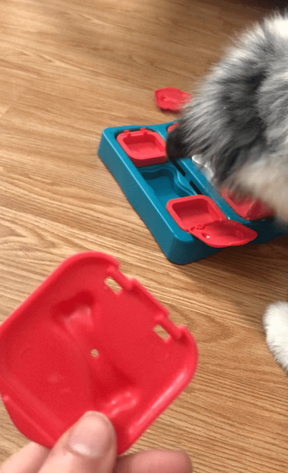 Another one of Arashi’s favorite. It kept him really busy and entertained. You place some kibble or treats in the compartments, and your dog needs to figure out how to solve the puzzle!